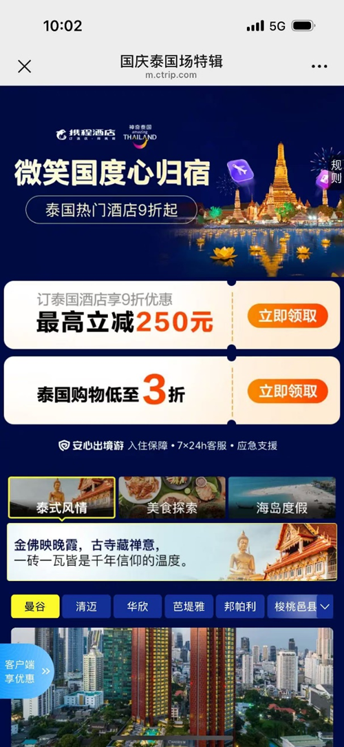 中国游客专属!携程与泰国国家旅游局携手推出专项补贴:酒店预定9折,机票最高立减350元!