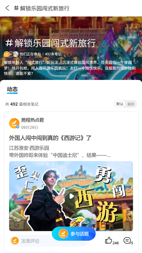 此外,内容生产与消费在后黄金周时代也将持续发力,尤其是国庆后1-2周是社区笔记视频短动态的爆发增长期,携程社区也同步推出流量扶持策略,保证大家国庆的旅行喜怒哀乐能被更多人看到,优质内容还有机会“上墙”携程社媒官号获得真金白金的奖励或者流量扶持。