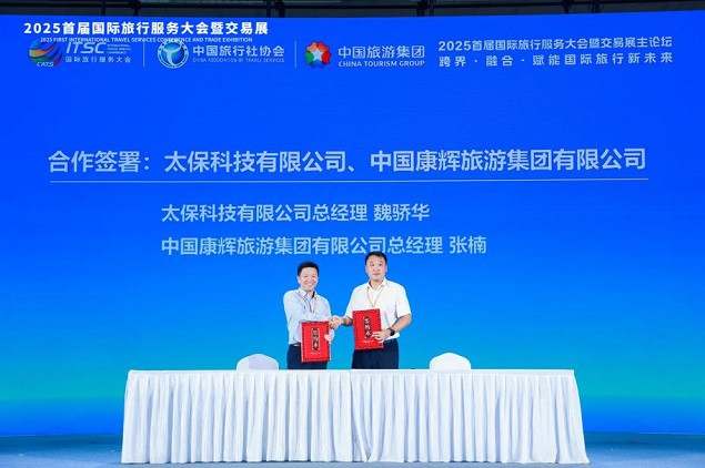 太保科技有限公司总经理魏骄华(左)、中国康辉旅游集团有限公司总经理张楠(右)