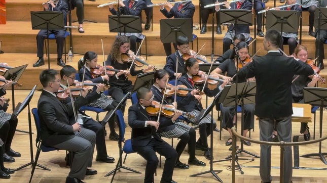 音乐会以《罗莎蒙德序曲》《哈利・波特与火焰杯》配乐的合奏演绎拉开帷幕,两国乐手同台献艺、技法娴熟,瞬间点燃现场热烈氛围。随后,北京少年金帆管弦乐团的小乐手们演绎作曲家鲍元恺的《放马山歌》与《拔根芦柴花》,这支由平均年龄十岁少年组成的乐团,凭借扎实的功底与灵动的表现力,赢得了现场观众的阵阵掌声与一致好评。