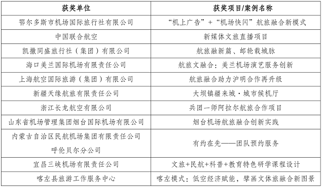 其中,鄂尔多斯市机场国际旅行社凭借“‘机上广告+机场快闪’创新模式”赢得认可,中国联合航空的“新媒体文旅直播项目”与海口美兰国际机场的“演艺服务创新”案例也双双获评。本届共评选出十大精品案例与一项履责担当案例,完整名单如下: