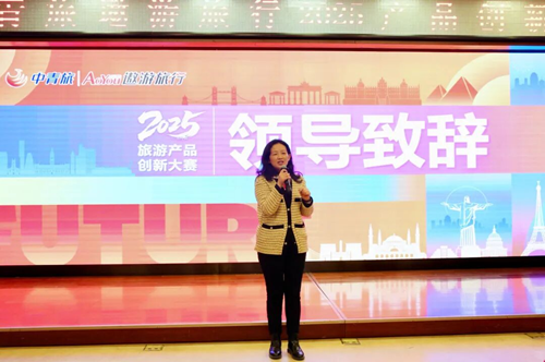 中青旅遨游公司总裁助理 刘杰作开场发言,她首先对现场莅临指导的公司领导、行业嘉宾及会员客户表示了感谢。她指出,党的二十届四中全会通过的“十五五”规划建议中明确提出要激发全民族文化创新创造活力,更清晰勾勒出“推进旅游强国建设,丰富高品质旅游产品供给,提高旅游服务质量,推进文旅深度融合”的发展路径。中青旅遨游旅行作为旅游行业的中坚力量,始终紧随国家发展战略方向,本届产品创新大赛的举办既是对“十五五”规划建议的积极响应,更是对推动中青旅遨游旅游业务高质量发展的务实举措。入围本次大赛的18条精品线路,通过初赛层层筛选与市场检验,覆盖地域广、体验玩法新、服务品质高,代表了遨游产品不断创新发展的趋势,未来,中青旅遨游旅行也将持续以创新力为核心动能,为消费者提供更有品质与创意的旅游产品。